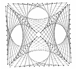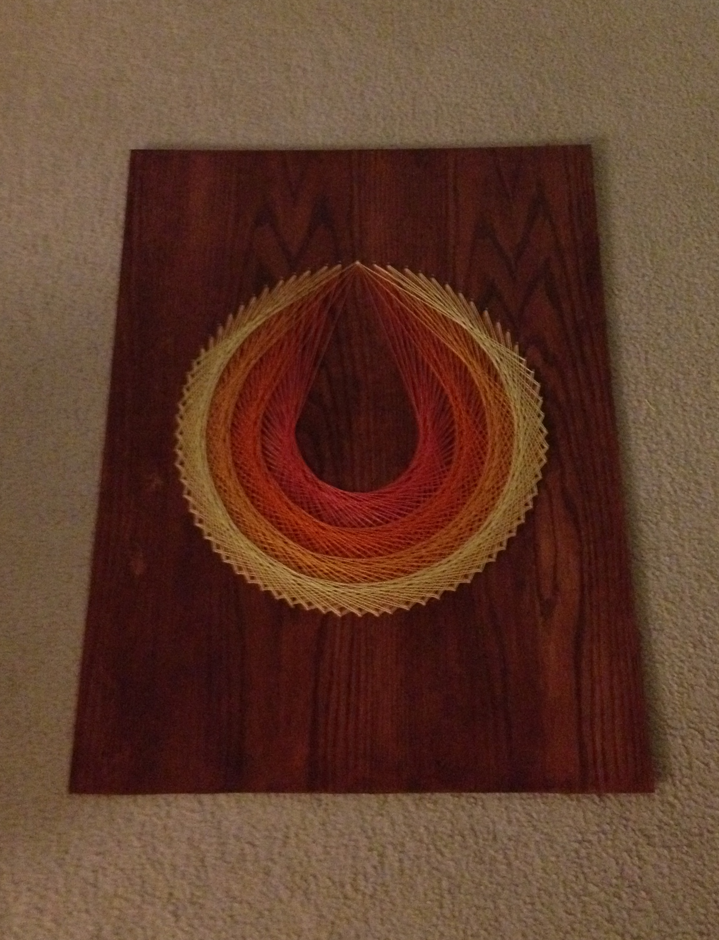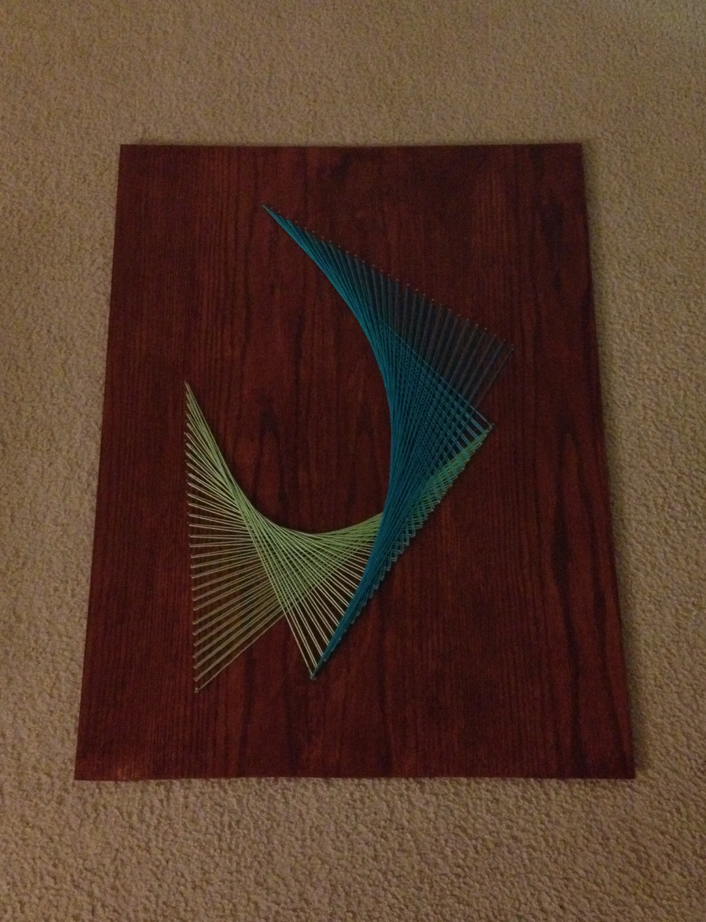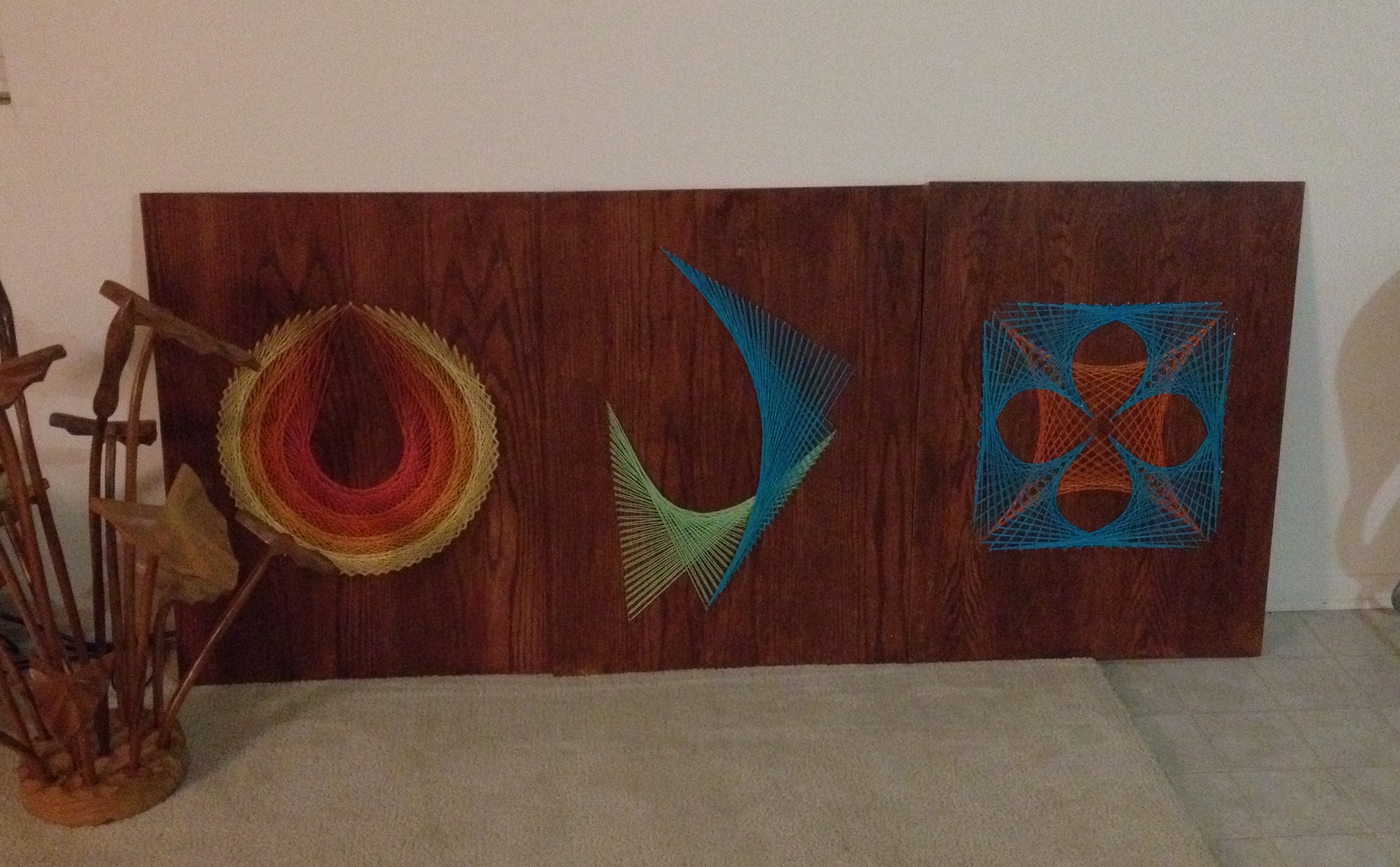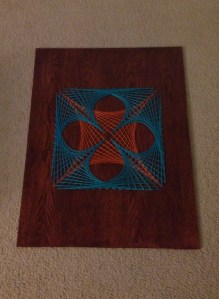 In my previous blog entry I started my string art projects.  I stained the wood for all three pieces and finished stringing the first one.  Now I’ve completed the other two as well.  The patterns I’ve used for my first two pieces are from Designing in String by Robert Sharpton (1972).