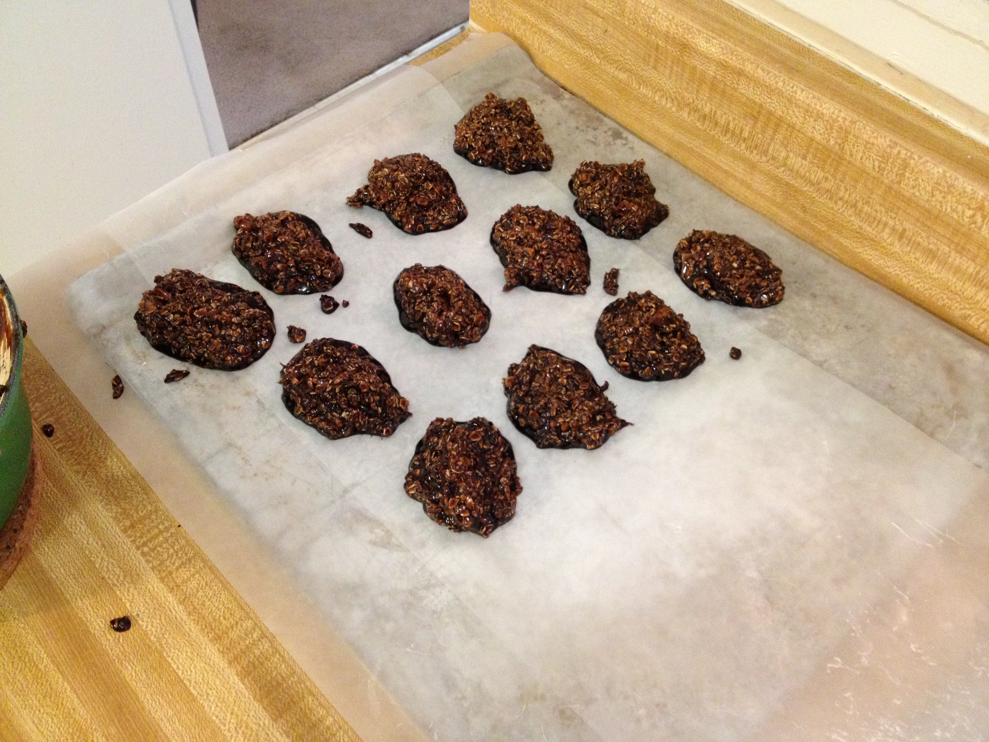 Or I suppose it’s Great Grandma Enright’s recipe to me… Anyway, I have a sweet tooth & while chocolate is not my go-to food for satisfying it, occasionally I do love a chocolate cookie. These are great & super easy to whip up. And as long as you use gluten-free oats they are gluten-free 🙂