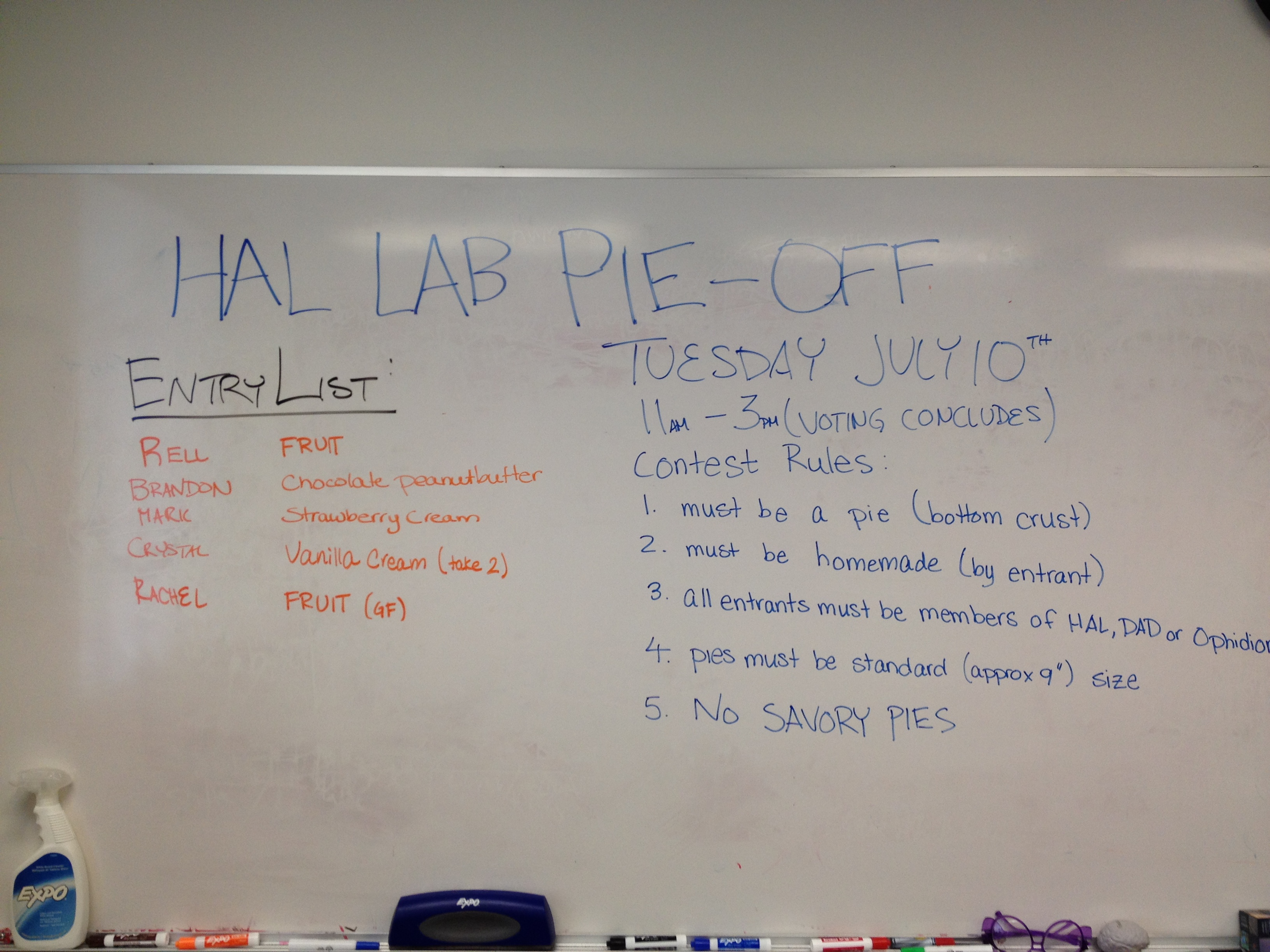 So, we’re having a pie-off at the lab.