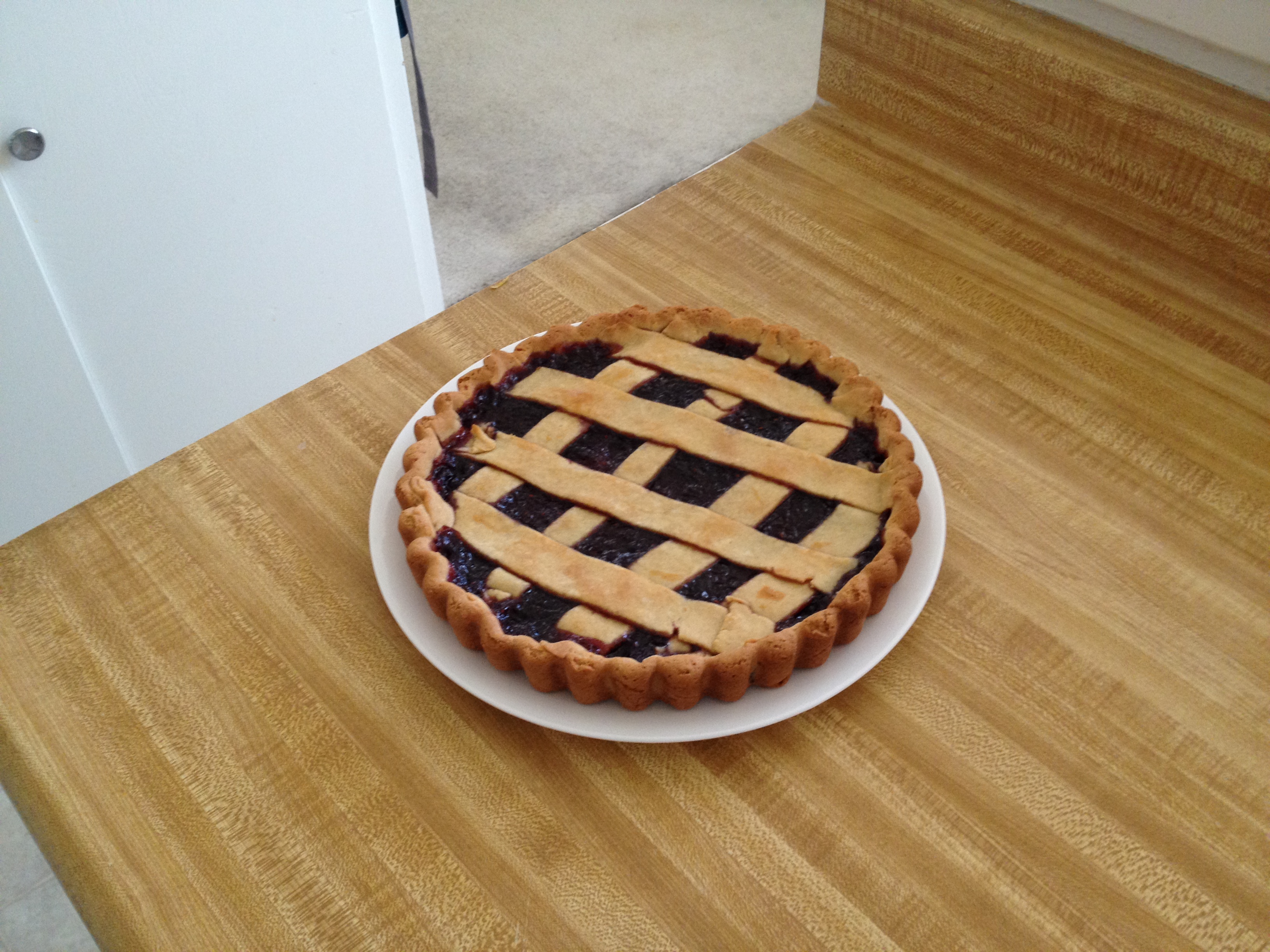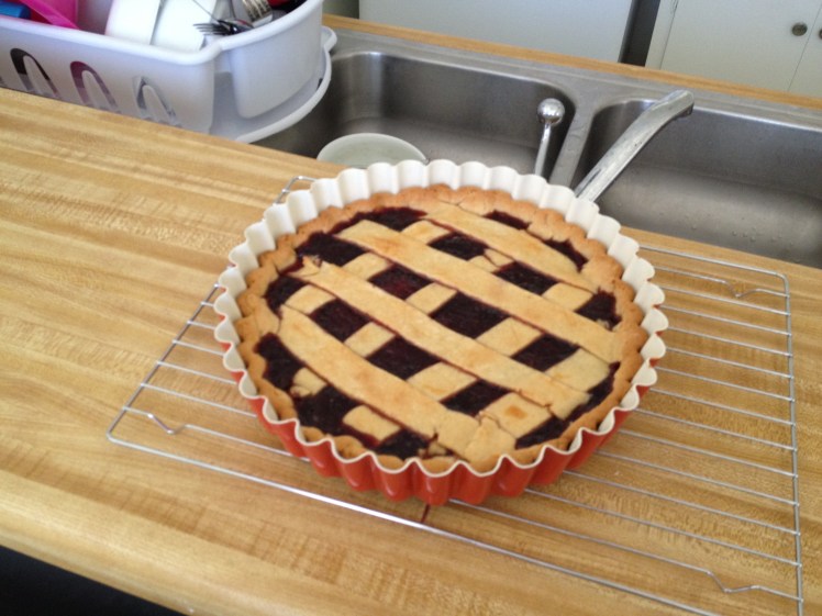 I have never made a pie before, let alone a gluten-free one (although, it might make it easier since I can’t overwork the gluten). I’ve decided to make a crostata di marmellata as I’ve been wanting to make one ever since the (ex)boyfriend brought me back preserves from Italy (I have a thing for preserves/jams). I’ve found a number of sites across the web with pasta frolla recipes (the shell) & ended up adapting this one to make it gluten-free using Pamela’s Bread mix (stay with me here). The bread mix already has xanthan gum, a little bit of sugar & some salt in it plus the flour, so I just added more sugar & the wet ingredients. Anyway, it turned out delicious, so I thought I’d share.