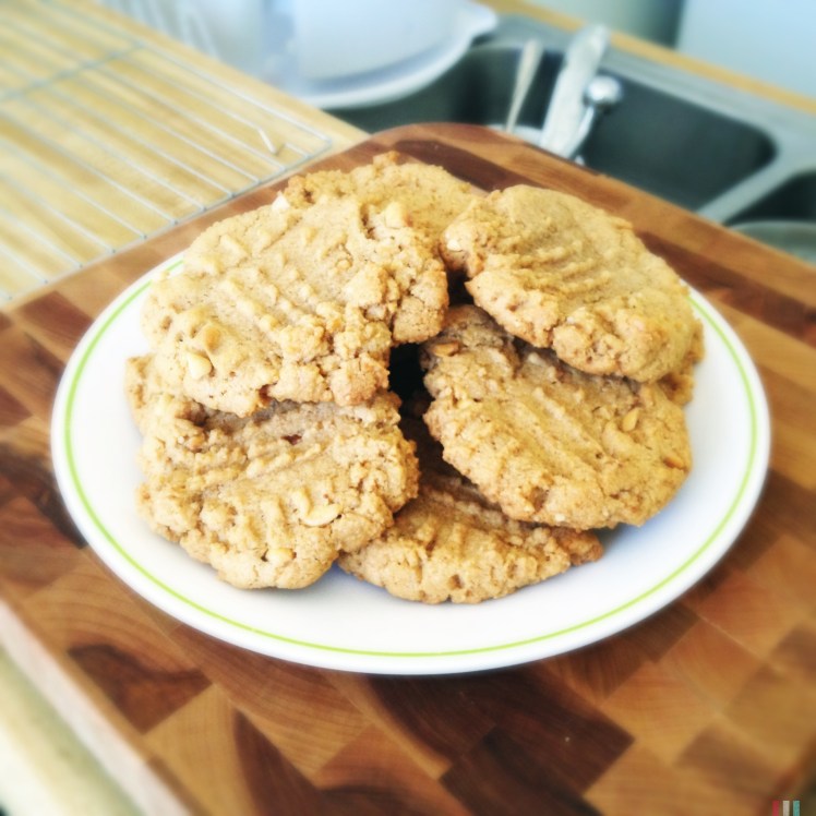 Mmm…peanut butter. Saw these on pinterest & had to try them–they are super easy, delicious & flour-free! Here’s the original posting.