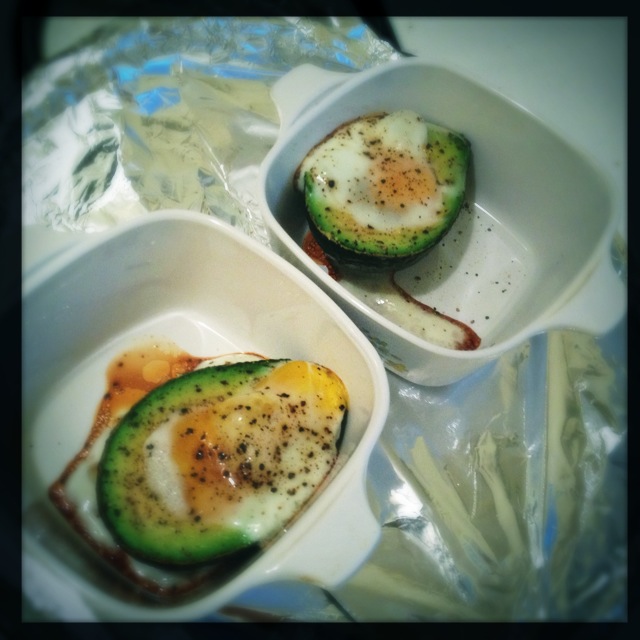 Yield: 2 eggy avocado halves (I consider this 1 serving…)